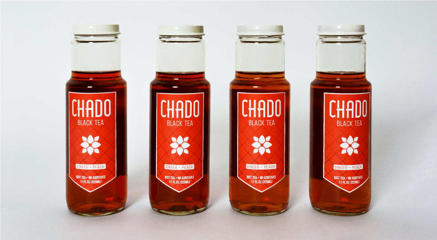 Similar to other tea brands, the natural color of Chado’s tea is showcased by its bottle, which is made of glass for a purer taste and premium feel. The brand, label, and carrier colors were chosen to complement the natural color of Chado’s green and black teas.
