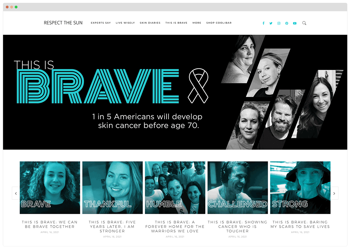 Throughout May, the Coolibar® blog becomes a microsite for This is Brave and a home for warriors’ stories. Shared and discussed on social channels, every blog helps thousands engage with skin cancer awareness.